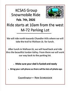 KCSAS Group Snowmobile Ride Members Only February 7, 2026 Ride starts at 10am from the west M-72 Par...