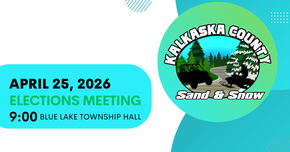 Club Meeting is 9:00am at the Blue Lake Township Hall. Trail Stop is 11:00-3:00 at the Starvation Lake Corner Store